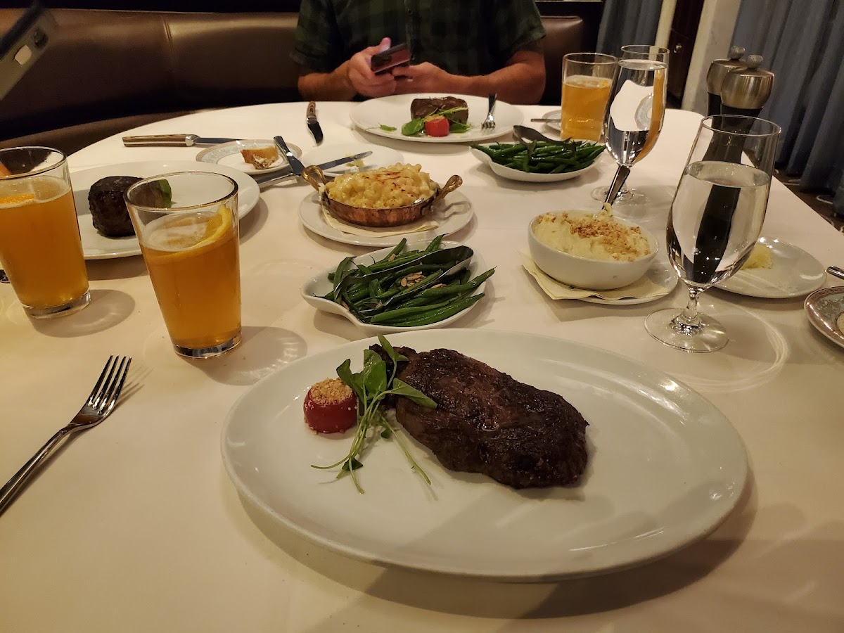 The focus here is clearly on steaks and martinis, but the menu has enough variety to keep things interesting. Highlights include the Bison Filet Mignon and Australian Wagyu, representing an elevated take on traditional steakhouse fare. For starters, the oysters served with classic accouterments add a fresh, slightly briny contrast before moving on to mains, while appetizers like crab cakes and shrimp cocktail offer a lighter entrée route or shareable option. There’s also a selection of well-executed sides such as grilled asparagus and crispy mushrooms to complement heartier plates.