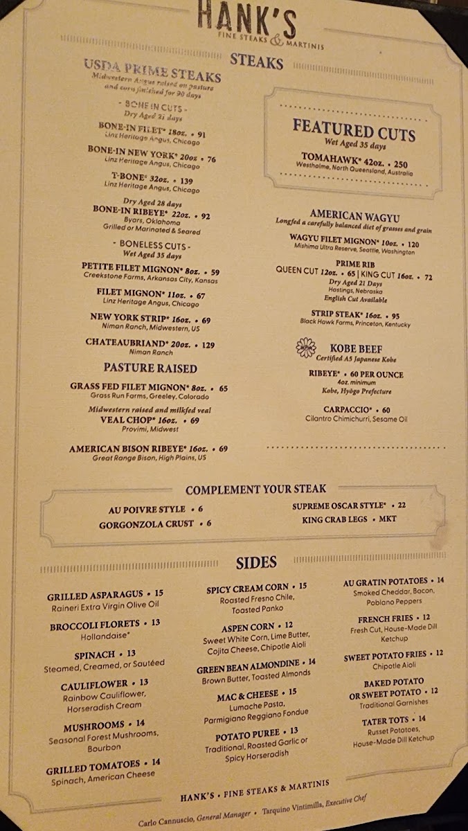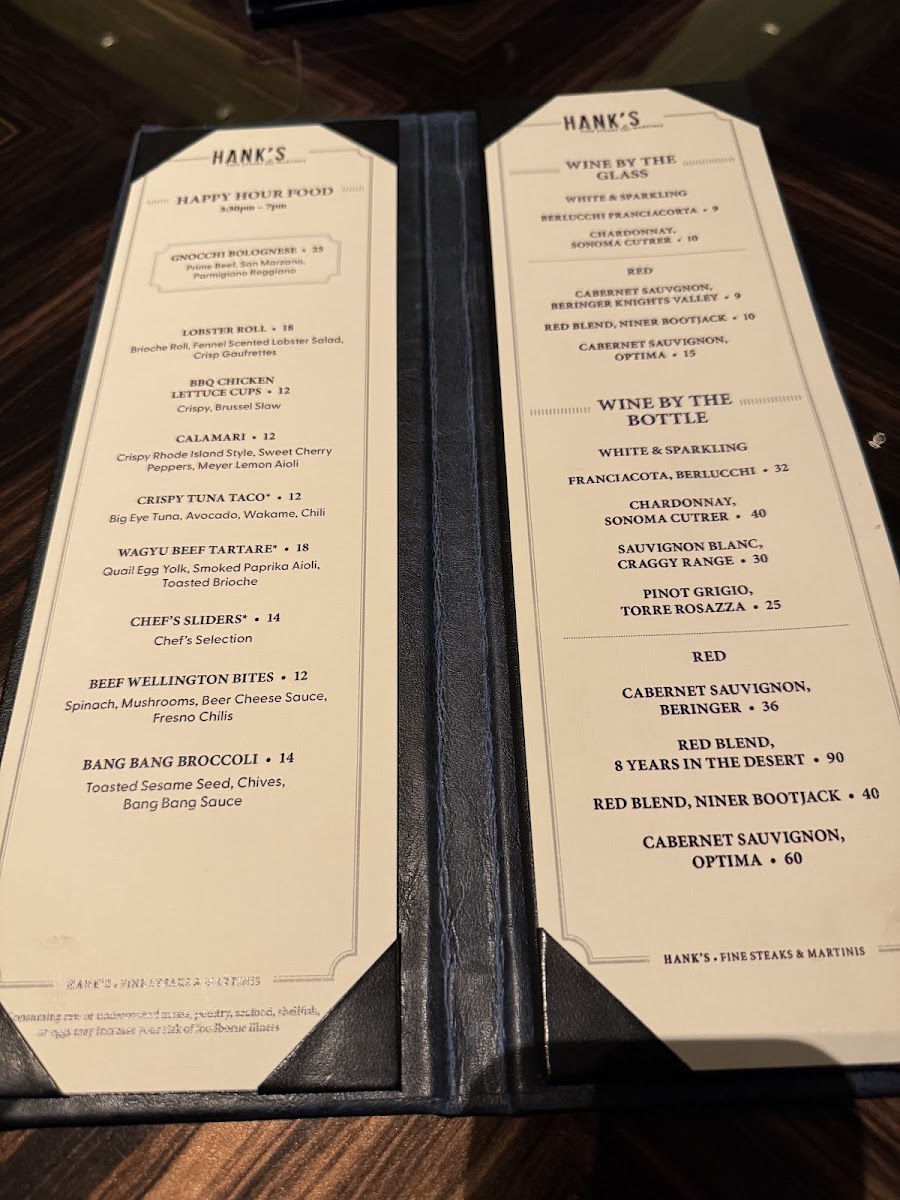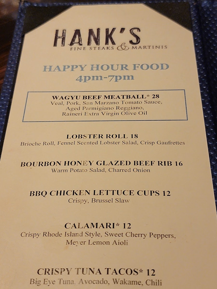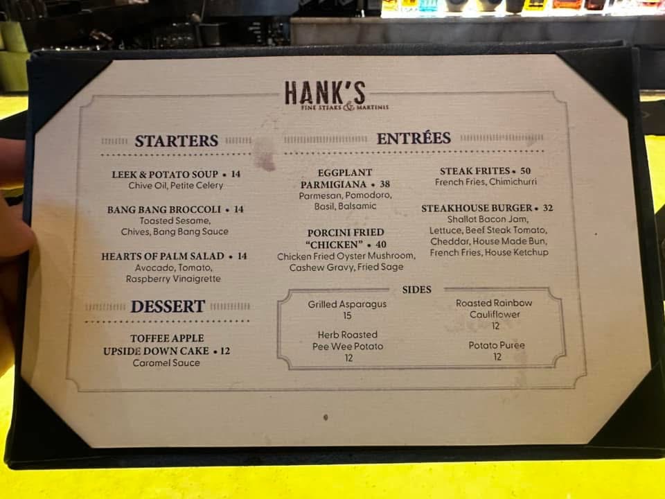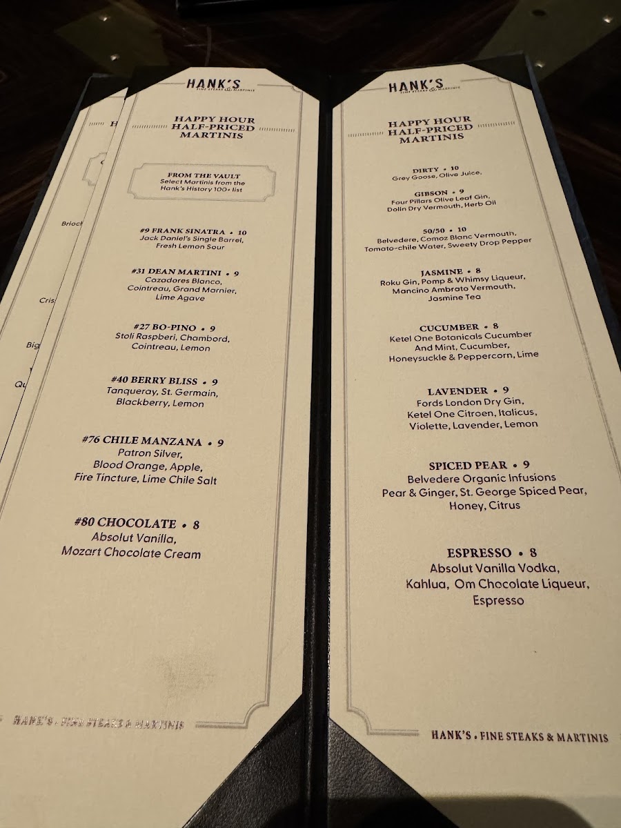 Hank's Fine Steaks & Martinis Menu