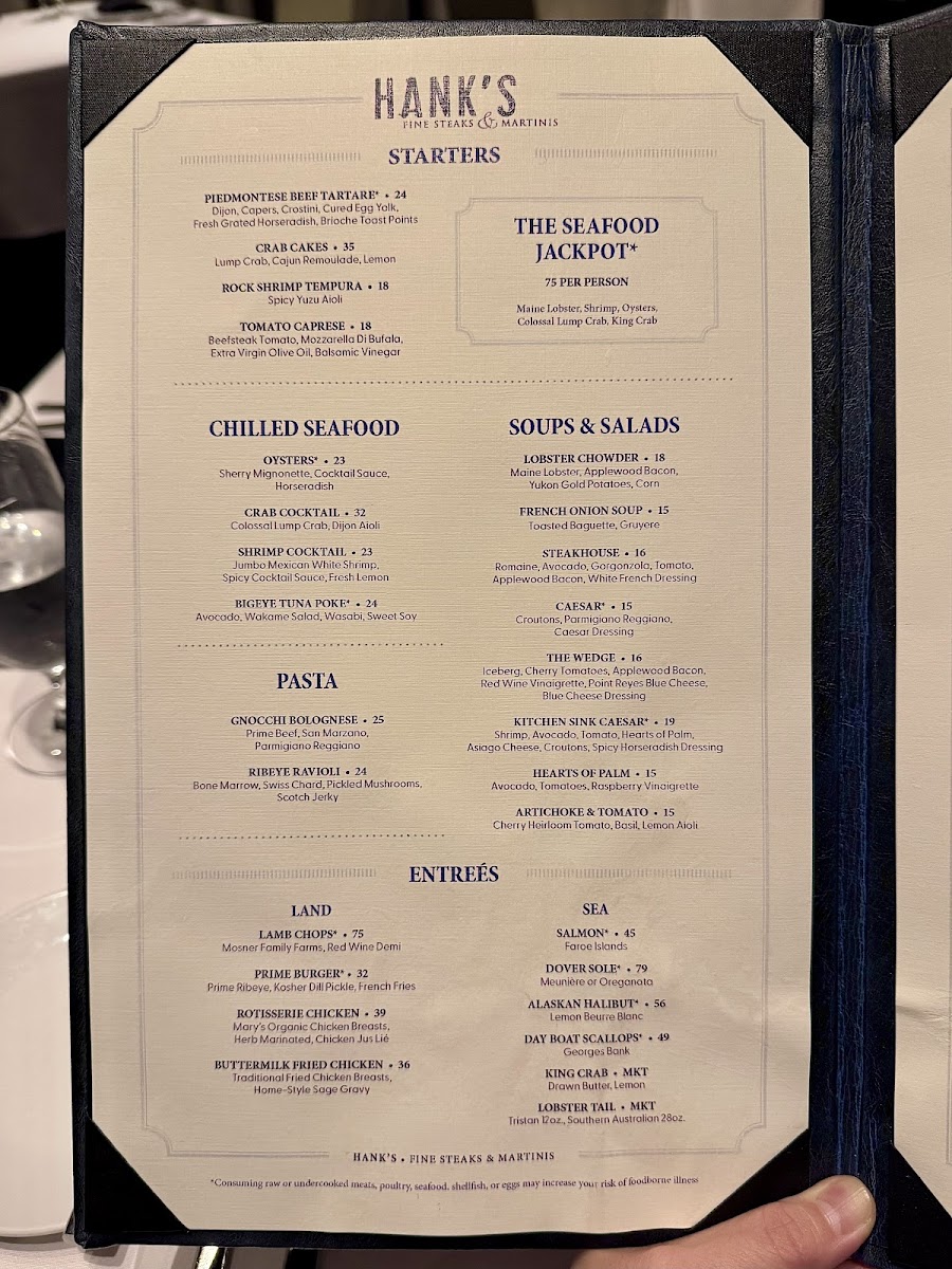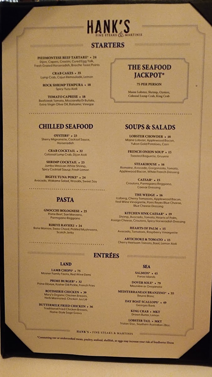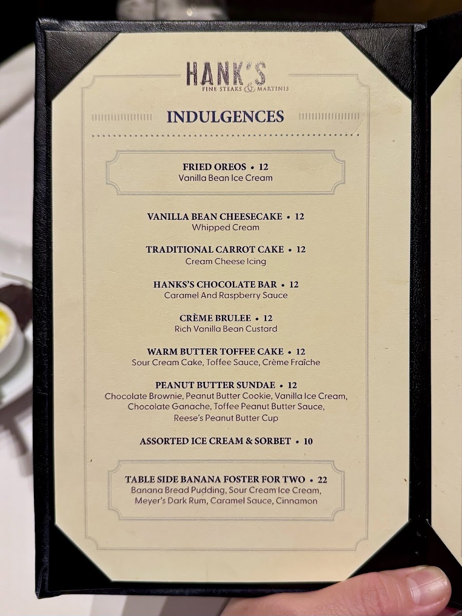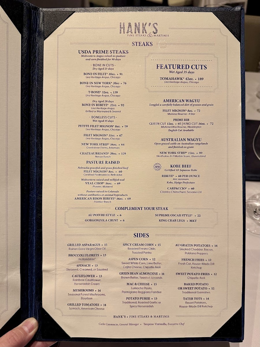 Hank's Fine Steaks & Martinis Menu